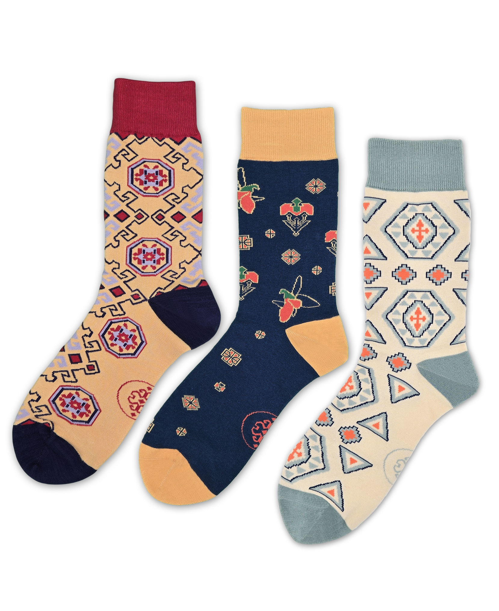 The Ahsham Bundle brings together a trio of our signature elegant crew sock designs — Nar, Karabakh, and Pakhlava.