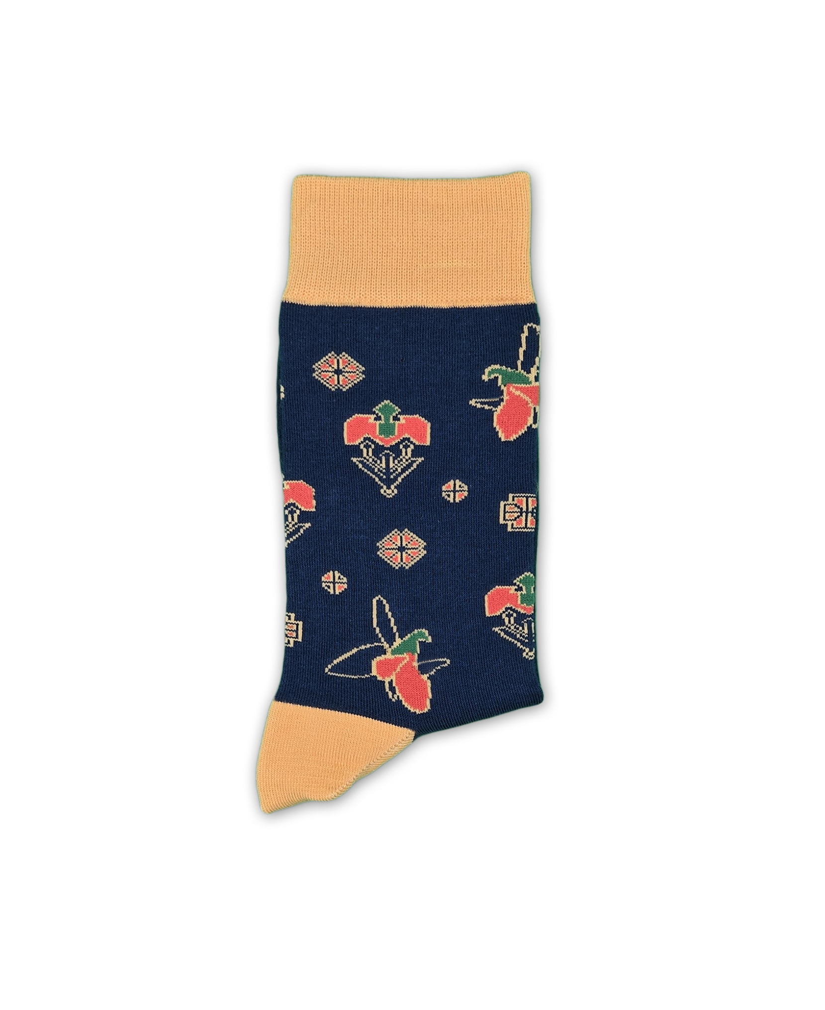 Karabakh Navy – Designer Cotton Socks Inspired by the Khari Bulbul Flower. A Testament to Love and Transformation.